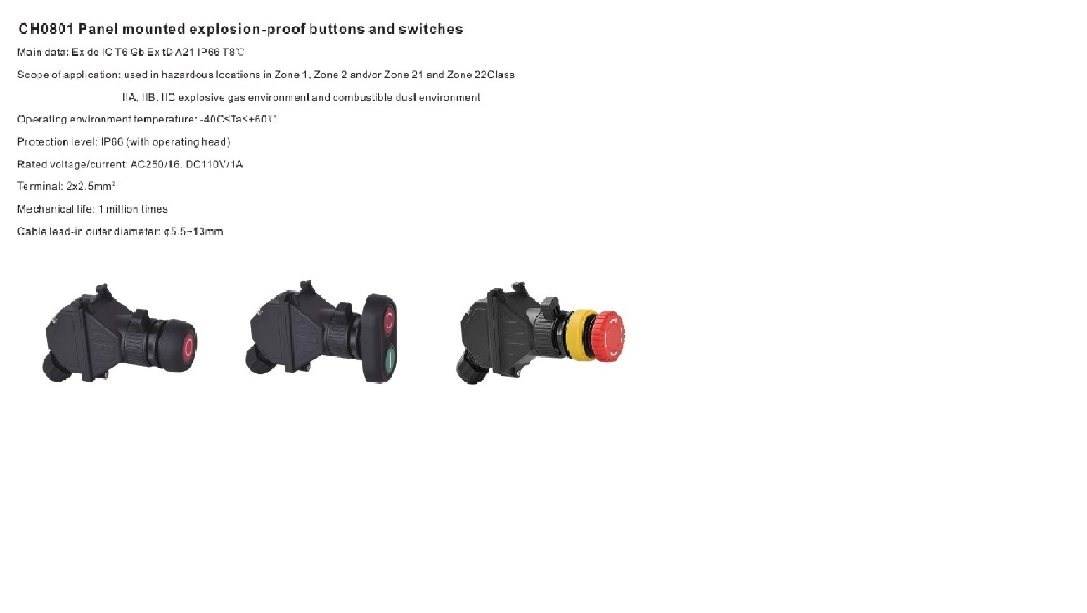Scope of application: used in hazardous locations in Zone 1, Zone 2 and/or Zone 21 and Zone 22 Class