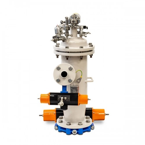Powder transfer system from a drum with suction lance managed by Vacuum Conveyor; product unloading in a Bin through the Mill installed on a Lifting Column with subsequent IBC (intermediate bulk container) mixing phase with Bin Blender - Tumbler.